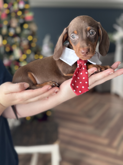 Roxie and Pickles created Chocolate Perfection! Roxie is super silly and loving, a crazy kisser, and adorably stubborn when she wants to be. Pickles is our "Mighty Dog", with confidence and personality oozing to everyone he meets. Message us today to reserve one of these pups!